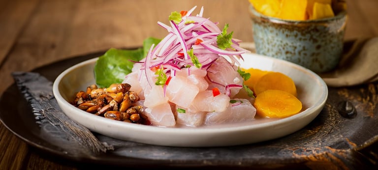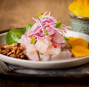 Autentico ceviche de pescado sabor tradicional.